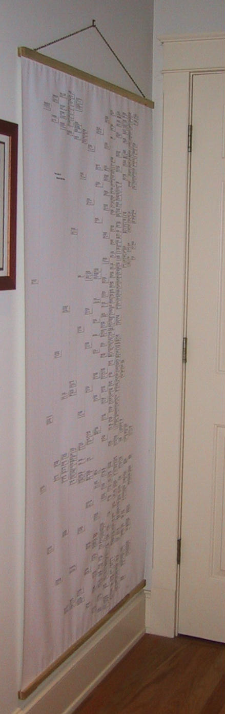 Wholly Genes has a printing service that can print directly from your file created by VCF. They do a nice job, using a heavy grade of paper that's 3 feet wide, and ship the chart off promptly. The chart in the photo, which is nearly six feet tall, costs about $30 plus shipping. For details, see the Chart Printing Service website, or use the Reports > Chart Printing menu to open the chart printing screen. I am told that this service will be available until about mid-November, 2014.