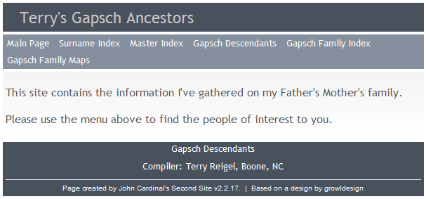 When the reader clicks the "Gapsch Family" button this sub-page appears:![]() |