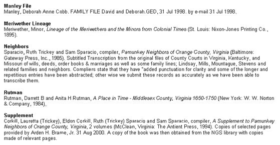 Using the alternate method, you have a "Table of Sources" that tells the reader what source each "code" refers to. You would create the table using TMG's Bibliography feature, specifying in the Report Definition that a Bibliography should be included in for the report. Here is an example of what such a table might look like: