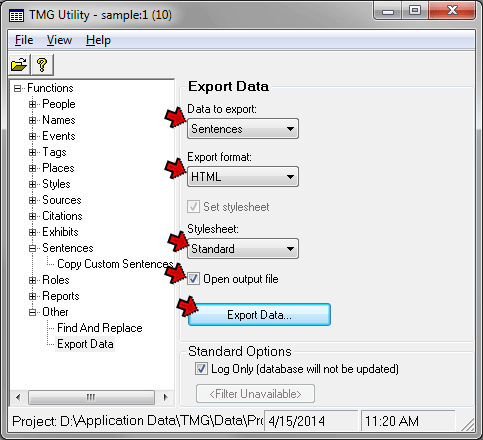 Click the "Export Data" button, and after specifying a location for the file that is to be generated, you see this dialog: